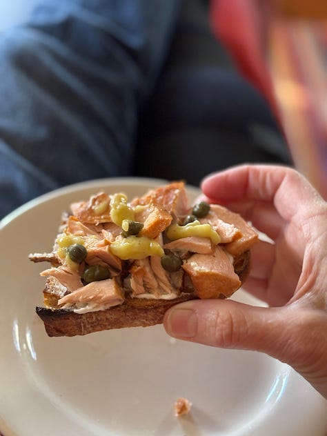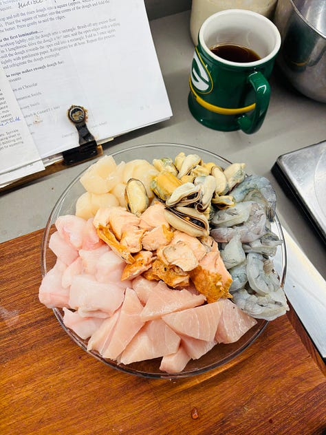 I took some a lot of liberties with the fish pie but that recipe is surprisingly forgiving for all its ingredients and steps. Added mussels, added swordfish, smoked the salmon, didn’t use the trout, didn’t have chives, probably had less fish than they called for, poached the fin fish in the milk before thickening it, didn’t use the fennel, didn’t use the dill - but it was so very good and made so very much anyway that we ate for a few days and we were happy about that.1
