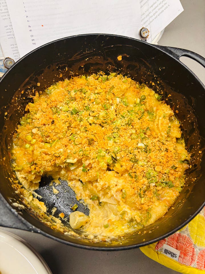Among the many Thanksgiving preps this week, there was also miso-scallion mac and cheese which with the big shells is kind of extra! and tahini cookies which it turns out Izzy is the only one who knows how to properly roll them in sesame seeds and some profoundly satisfying but deeply unphotogenic galettes bretonnes a.k.a. buckwheat crepes with ham and eggs and cheese and a if I do say so myself a truly spectacular fish pie even though Izzy thinks the idea of “fish pie” may be suspect.