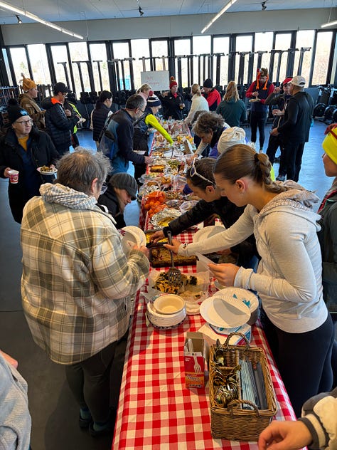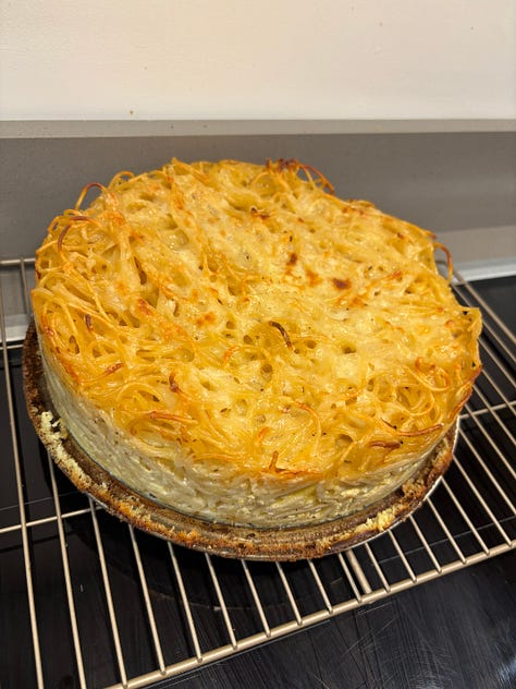 Spaghetti Pie (v and so not df) - technically not part of dinner because it went to the CRI rower’s potluck that morning but it might make the regular rotation for potlucks because potlucks always need more savory and it was damn good.3